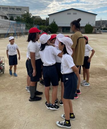 とても元気な子供たち。ラグビーボールを使い瞬発力、俊敏性を養い、みんなで協力しながら楽しむ実技の授業となりました。