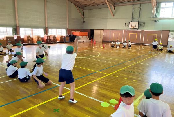 後ろで待機をしている生徒達はプレー中の生徒にアドバイス!「あっち!あっち!」「こっちにもあるよ!」と全員で大盛り上がり!誰が1番に3個集められるかな?