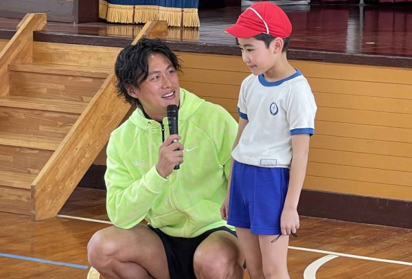 2月22日、サッカー元日本代表・李忠成さんが、鹿児島県指宿市立池田小学校にアスリーチ!芝生の校庭で全校児童と一緒にサッカーを楽しみました。