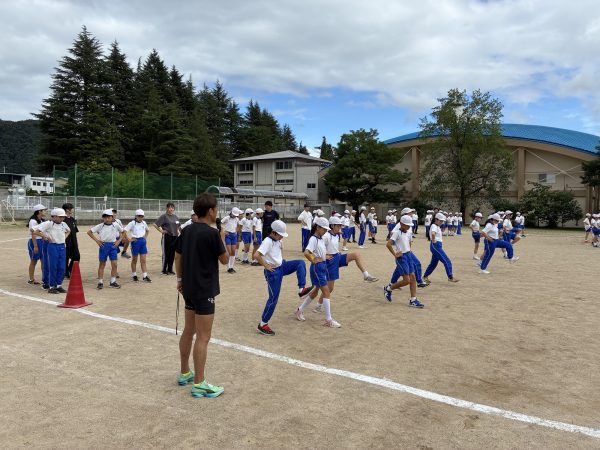 実技では脚を大きく上げて走る、歩きながら足にタッチ、2人組で腕を大きく振る練習などで基礎を固め、時折平塚さんよりアドバイスを貰いながら真剣に取り組んでいました。