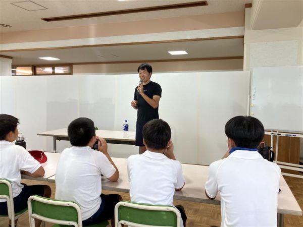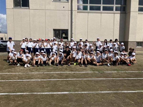 「大きくても小さくても目標を決めて努力を続けて欲しい」とあきらめないことの大切さを伝えました。児童たちからは「足が速くなるには何を食べたら良いか」などたくさんの質問が上がっていました