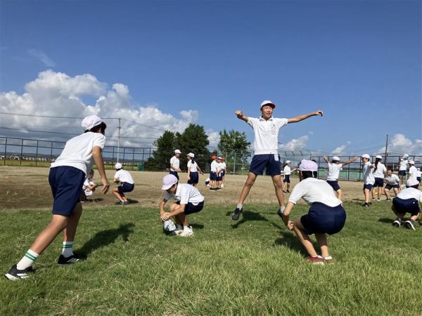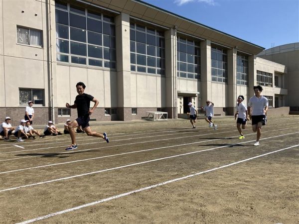 授業はグラウンドで跳躍力を鍛える基礎練習からスタート。
