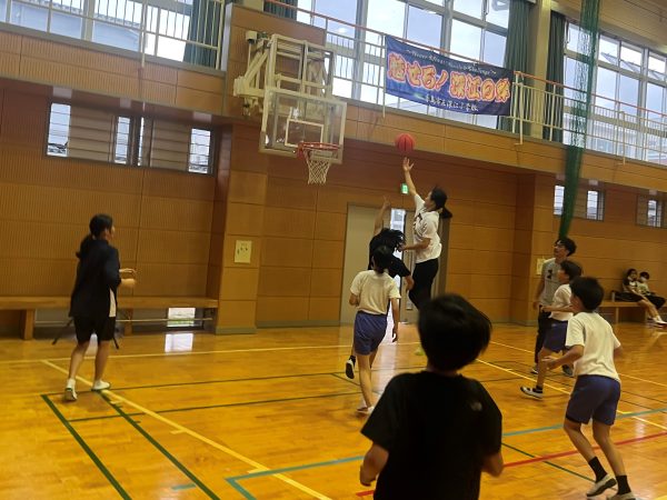 バスケットボールの体育授業を通して、自分で考え行動することの大切さや、感謝の気持ちを持つことの大切さを教える体育授業を行いました。