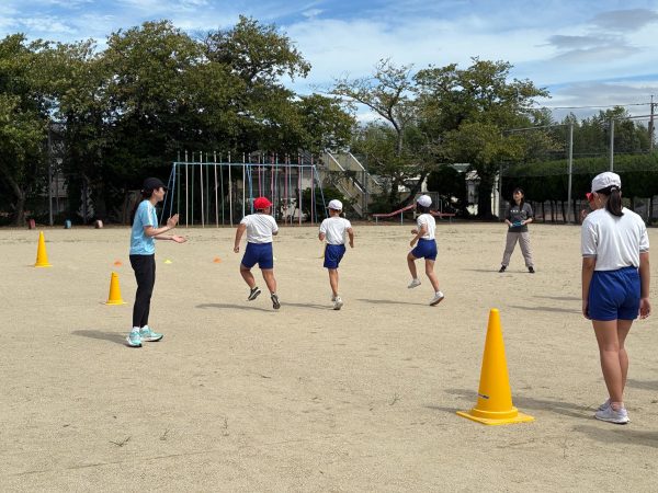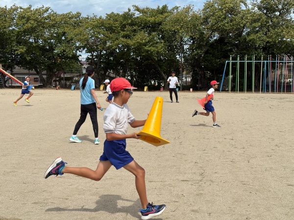 どうやったら一番になれるのか、どうやって次の人にコーンを上手く回すのか、などチーム一体となって声を掛け合いコミュニケーションをとる姿が良く見られ、大盛り上がりの中実技の授業は終了しました。