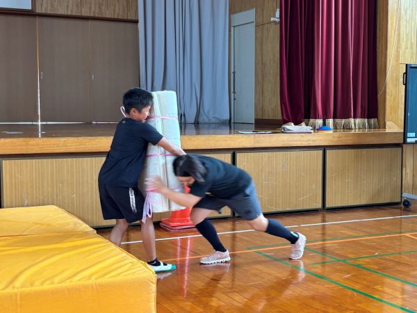 児童代表の言葉で「みんな体を動かすことが好きなので授業楽しみにしていました」と言っていたとおり、皆初めてのことでも果敢にチャレンジしていました。
