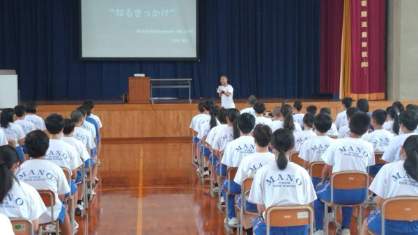 穴の奥にあるものが、実は自分が好きなものや欲しいもの、観たい景色等、最初から解っていれば抵抗なく近づける。しかし、自分が知らないものなら、ほかの誰かが確認するなり、『安心』という担保がないとなかなか進めない。それは障碍も同じこと。周りに、近くにそういった人が居れば普通に受け入れられる。当たり前の環境とは何なのか?それに気付いてもらう為、上記のような例を出して生徒たちの理解を深めていきました。今回、講話に参加したのは約100名強。池田さんのお話を聞いて、少しずつ理解し、心が解けていく様子がみられました。