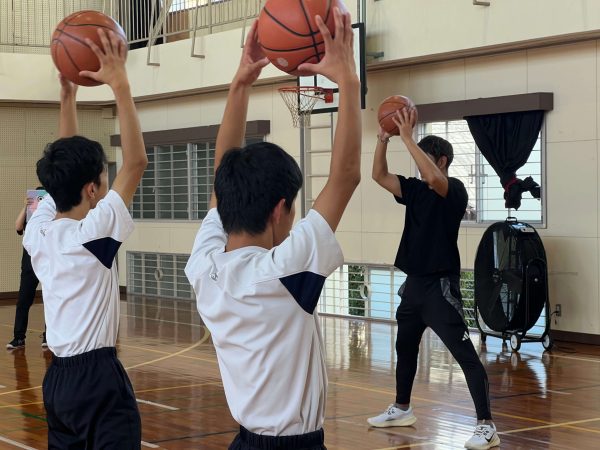 実技ではバスケの基礎であるハンドリングやシュートを体験!