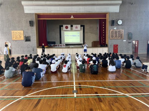 児童たちに向けて、夢に向かって挑戦する姿勢や考え方を熱く語りました。