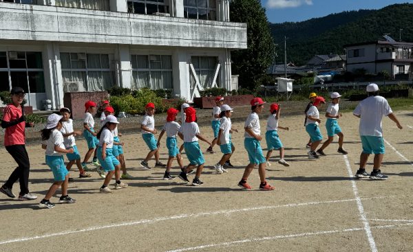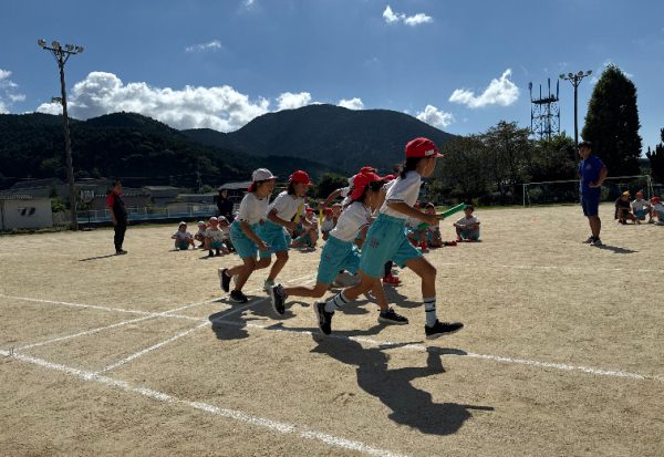 授業終盤には3〜6年生によるリレー競走。順位に関係なく児童たちからは走者へ元気な声援が送っている姿が見られました。