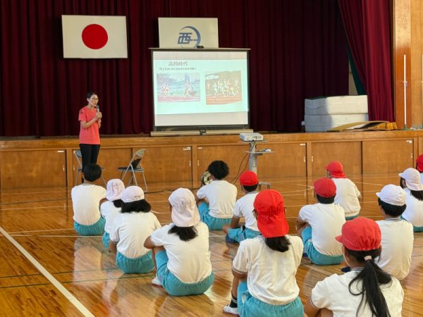 陸上記録会も近いということもあり、休み時間には徳田さんへバトンパスについて質問や実際にバトンパスを見てもらうなど、熱心な児童も見ることができた授業となりました。