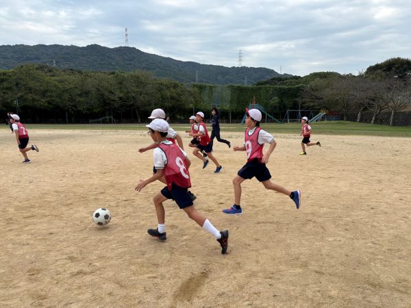 最後に先生+中払さんチームvs児童チームで試合をしました。応援する児童たちにも熱が入り、絶叫に近い応援が飛び交います。