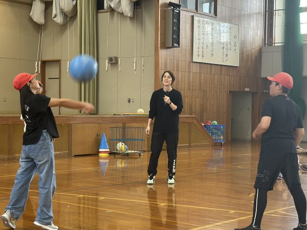 授業ではまずウォーミングアップを兼ねた簡単なボール遊びから始まりました。