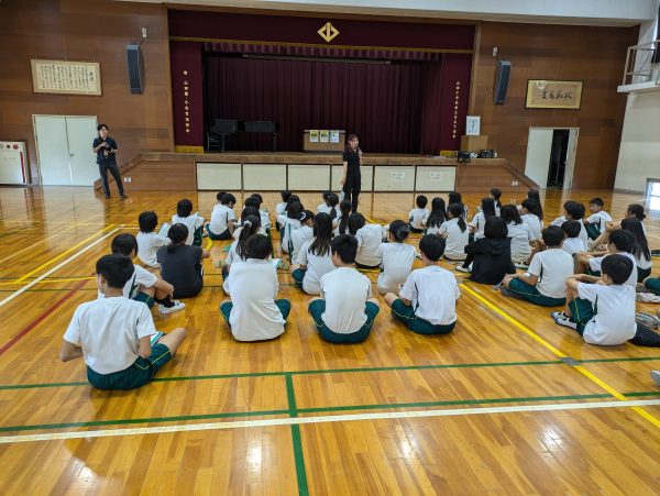 6年生を対象に、講話と実技を通して「笑顔で一生懸命なら夢は必ず叶う」というメッセージを伝えました。