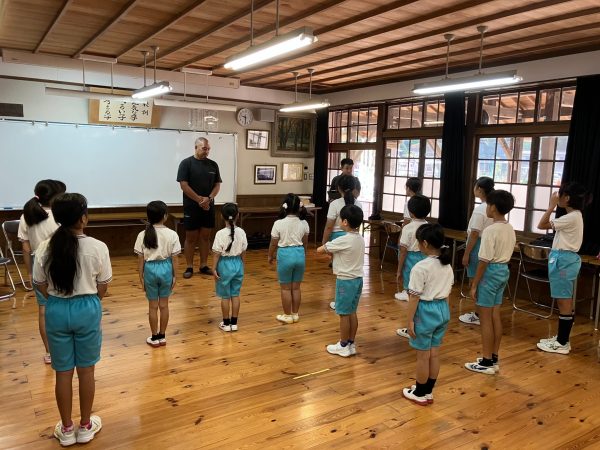 全校児童15名の大きな挨拶で迎えられた紀氏さん。「今夢があって皆の前で発表出来る人?」と聞いた紀氏さんに、多数の児童たちが手を上げて発表をしてくれました!