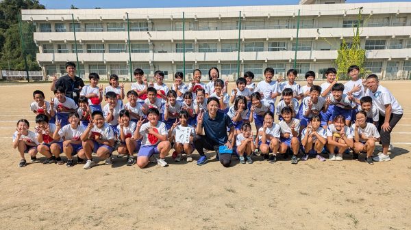小松さんを中心に、笑顔いっぱいの児童たちがポーズを決め、学びと喜びが詰まった1日となりました。