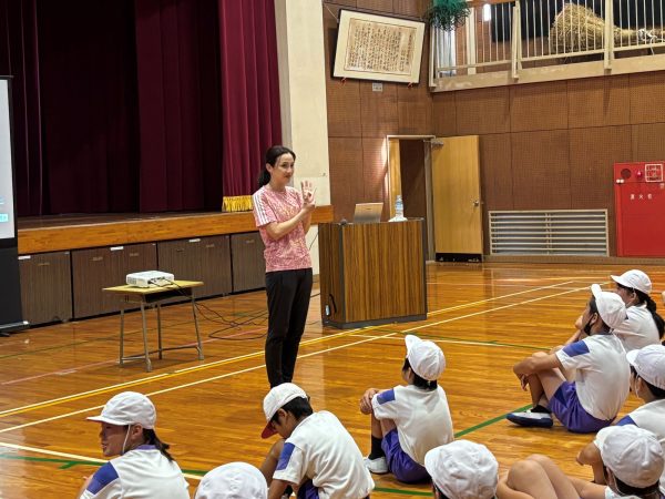 まずは講話の時間。湯田さんがこれまで経験してきたことをお話しし、児童から質問があるとそれに答えながらコミュニケーションをとってお話をしました。「失敗せずに目標を達成できることはなくて、必ず失敗は訪れます。なので失敗を恐れずいろんなことにチャレンジしていきましょう!」と明るくメッセージを送りました。