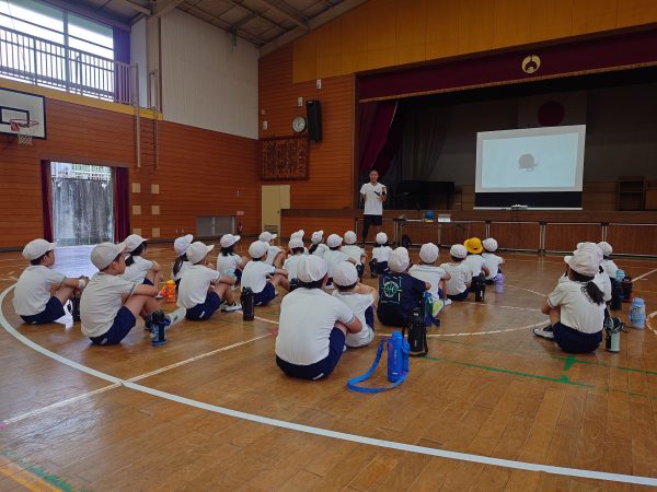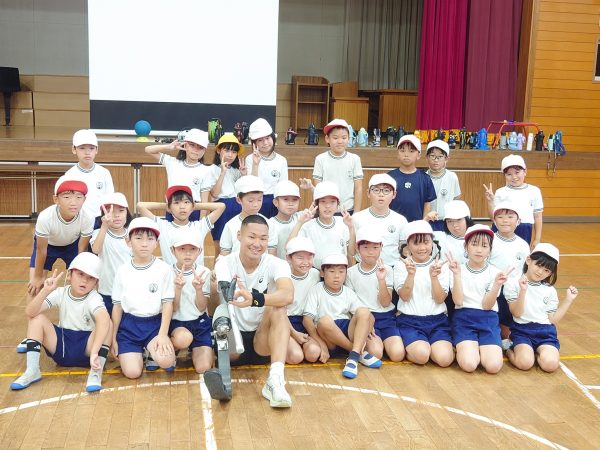 講話の授業では生い立ちやサッカー、バスケなどのスポーツ経験を話し、リフティングを披露しました。「えーっ!!!すごーいっ!」と思わず声が出てしまう児童たち。