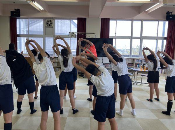 速く走るために大事なことは「姿勢」。まずは渡邉さんと一緒にストレッチを行いました。