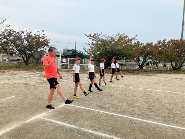 来週に陸上競技会を控える児童たちに早く走るために大事なことを伝えました。