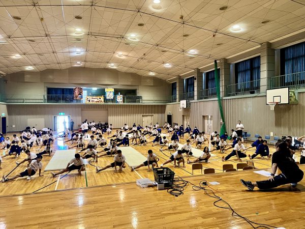 ストレッチまでは全校生徒が参加し、実技は3年生のみでした。