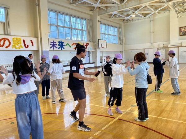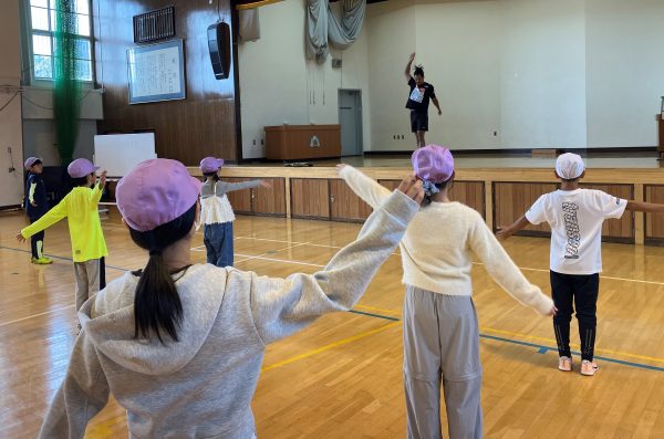少し難しいですが、児童たちは照れながらも楽しそうに行いました。手押し相撲や腕の引き合いは、身体の安定性や駆け引きが重要なことも教わりました。