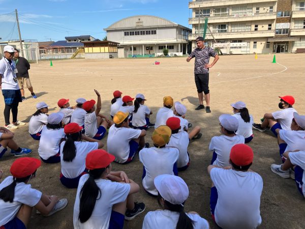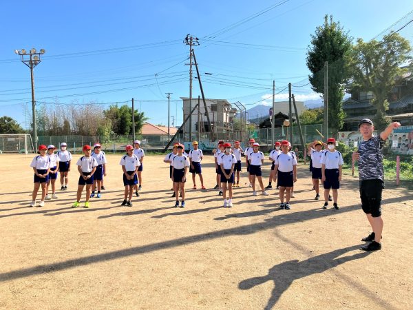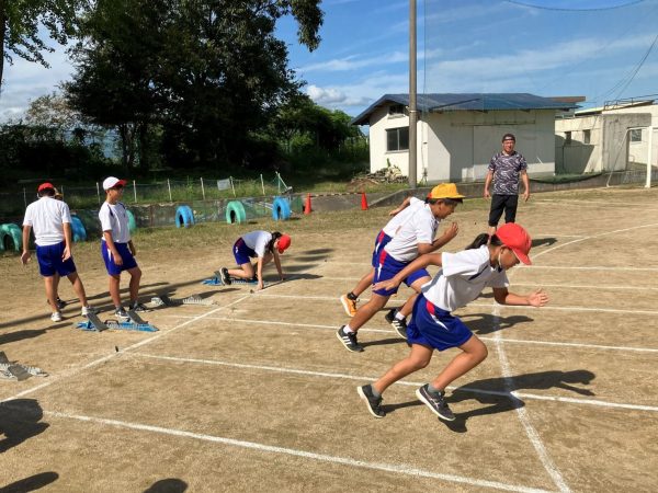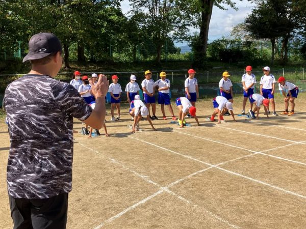 児童たちに足が速くなるために大事な姿勢のコツを伝えました。