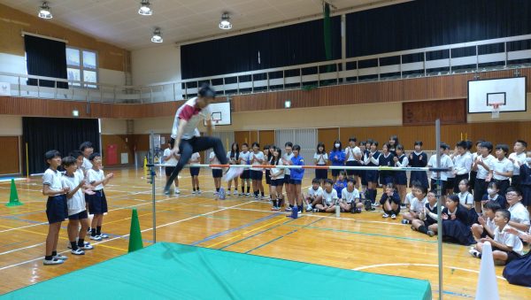 鈴木さんのデモジャンプではその高さとしなやかさに児童たちもびっくり!