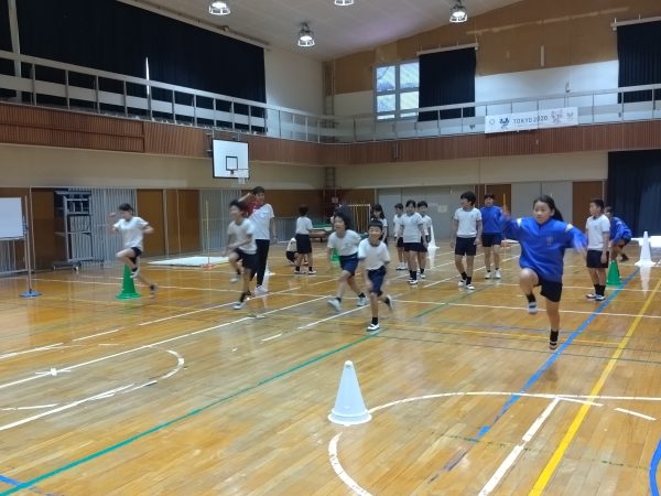 実技に参加した6年生は9月から走り高跳びの練習を授業で行っているそうで、鈴木さんからコツ、ポイントをしっかり習いました。