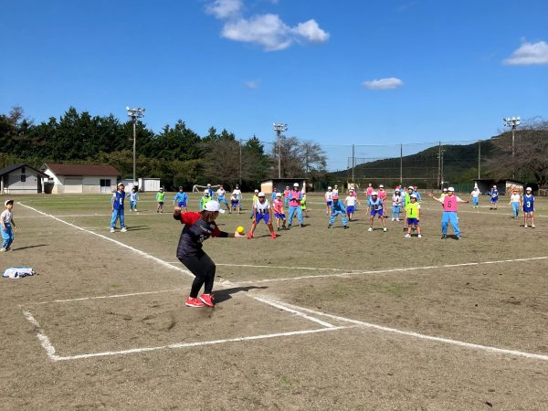 先生たちもみなさん頑張って打っていましたが56名全員での守備は鉄壁で、しっかり攻撃で点もとった児童チームが勝利して大盛り上がりの中授業は終了となりました。