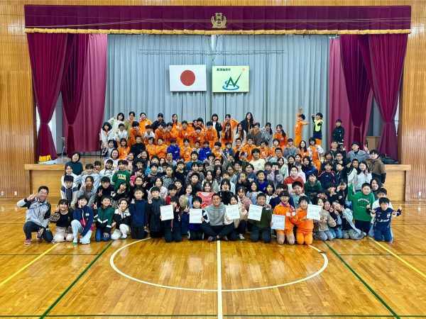 最後に若生さんの本気の遠投!!「ロスパラリンピックに向けて頑張ります!だからみんなも頑張ろう!」若生さんの描く放物線には児童たちへの熱意が込められていました。