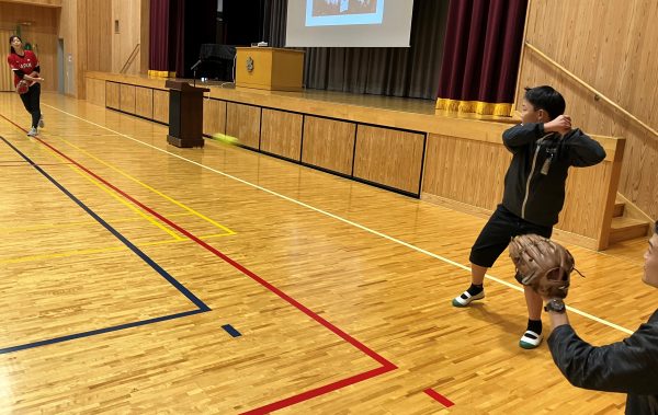 また、デモンストレーションでピッチングを披露。高校時代野球部だった先生にしかキャッチできないほどの剛速球にみんな度肝を抜かれ、眼をまん丸くしながら歓声をあげていました。