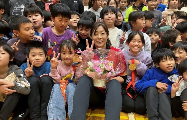 学校が熱望して実現した坂井さんのアスリーチ。児童たちにもとても喜んでもらえました。