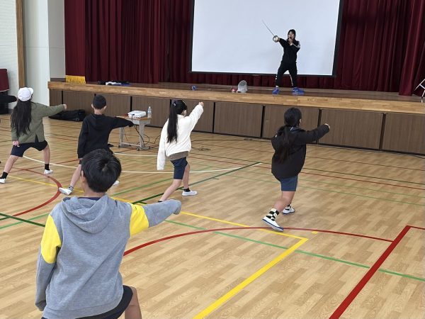 フェンシング体験と、自分自身を信じて磨くことの大切さを伝える授業を行いました。