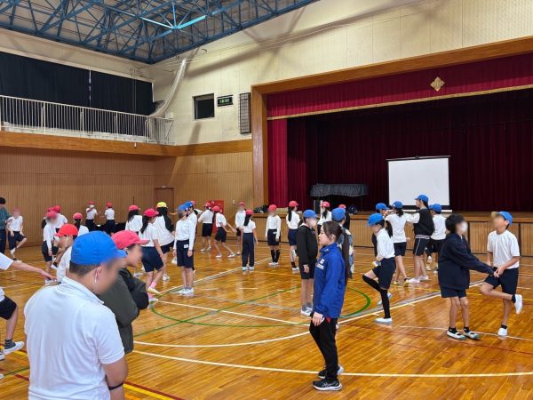 終盤の2人組でのジェスチャーの時には、参加児童の各々の自由な発想でお題を表現していて、児童全員に笑顔が溢れていました。