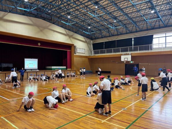 小学6年生66名の児童へ体操競技の経験と技術から、表現運動の楽しさを伝えました。