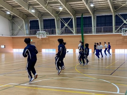 授業は全身のストレッチからスタート。普段はしないような姿勢で下半身を使ったダッシュやジャンプを行い、股関節を意識した体の使い方を学びました。
