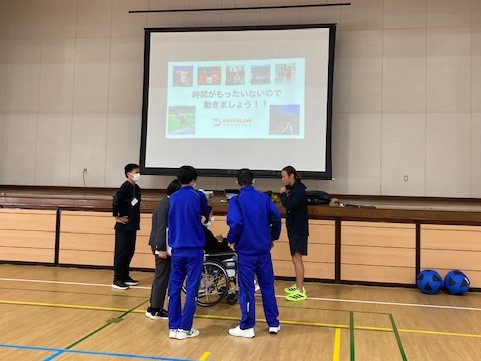 その後は、全身を使ってメディスンボールを投げる動作に挑戦。がっつり体を動かしたい!という生徒の要望に応え、少しハードなトレーニングメニューでしたが、終了後には生徒たちも満足そうな表情を見せていました。