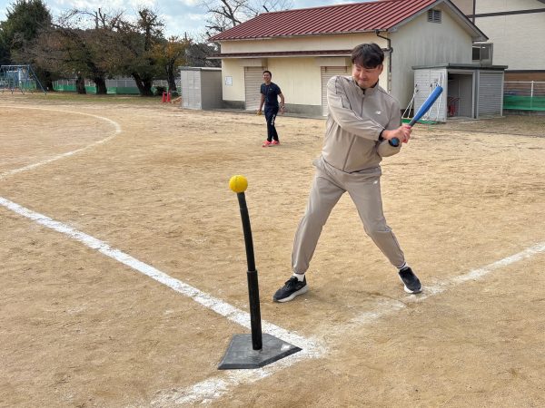 後半は実技へ!ティーボール野球の経験があるという児童たち。投げ方、捕り方のコツを教わりいざ試合へ。
