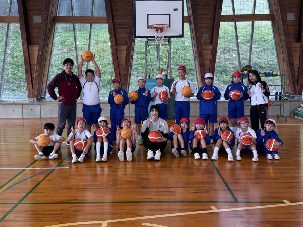 実技指導では良い習慣作りのためネガティブな言葉を禁止。ユニークなゲームの数々に、あまりバスケをしたことがない児童たちも大盛り上がりで休憩時間も積極的に自主練習を行っていました。