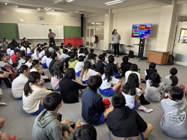 小学6年生80名の児童へ女子ラグビーでの経験から、違う個性を尊重できる大切さを伝えました。