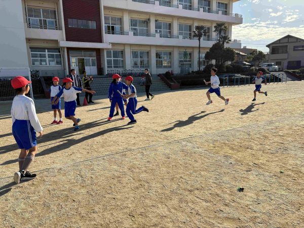 最後はリレーをしました。全員が走っていない間はチームを応援し、大変盛り上がり授業は終了しました。