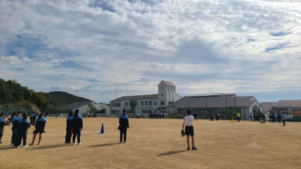 最後に、教わったことを元にティーボールの試合です。点が入りやすいルールで行い、大盛り上がりのうちに授業は終わりました。