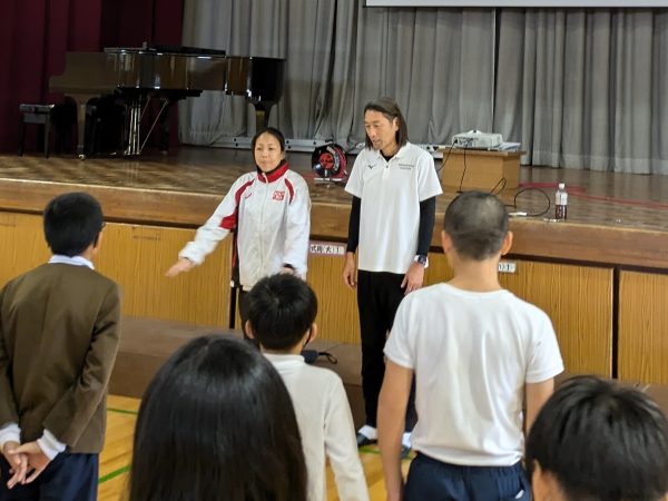 東京パラリンピック女子走り幅跳びT11クラス5位入賞・髙田千明さんと、アトランタ五輪4×400mリレー5位入賞・大森盛一さんが奈良県・橿原市立新沢小学校にアスリーチ!