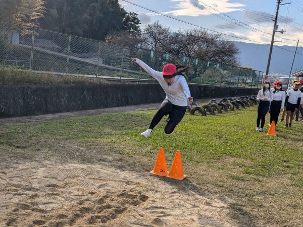 児童たちは跳ぶたびに歓声を上げ、楽しみながら自分の限界に挑みました。