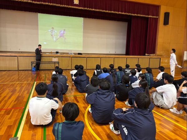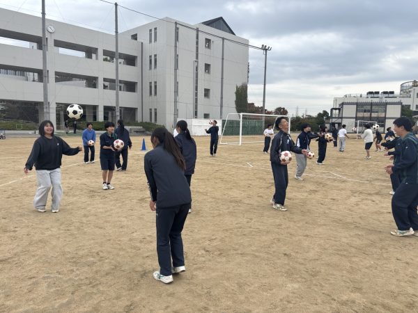 サッカーが得意な生徒はもちろん、普段サッカーをしていない生徒も江口さんのアドバイスで楽しく実践できた様子です。