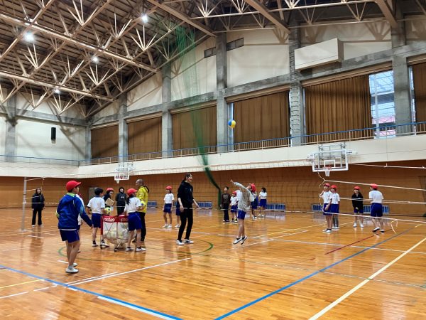 身体もほぐれたところで基本のプレーを教えてもらい、次はアタック練習!打つタイミングに集中して何度も挑戦していました。