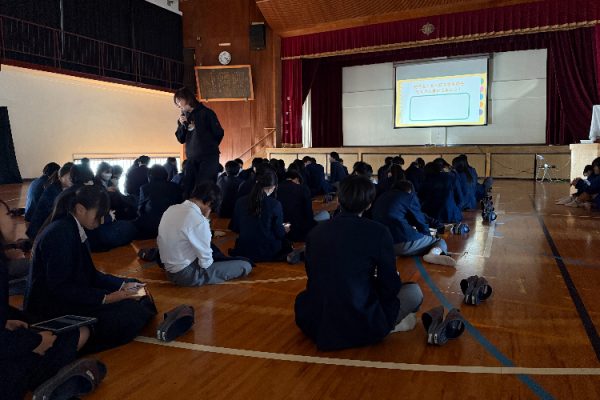 小西さんの活動や経験について野球をやりたいけどできなかった環境で夢のために取り組んでいたことなどを生徒たちへ話していく中で小西さんが大事にしてほしいと伝えたのは、何をするにも全力で取り組むこと。スポーツに限らず、何でも取り組むことに対して全力で挑んでください。それがいつの間にか好きなことになり自分の夢や目標になると生徒たちへ語りました。