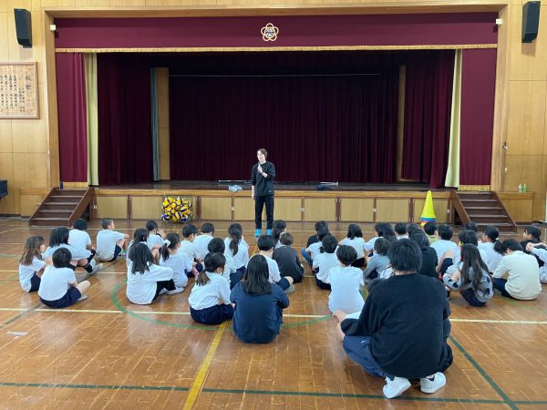 冒頭の自己紹介で「私が皆さんと同じ小学校4年生の頃は158㎝ありました。」と仰った大山さんに児童と先生全員で「大きすぎる~!!」と驚きの声が上がります!
