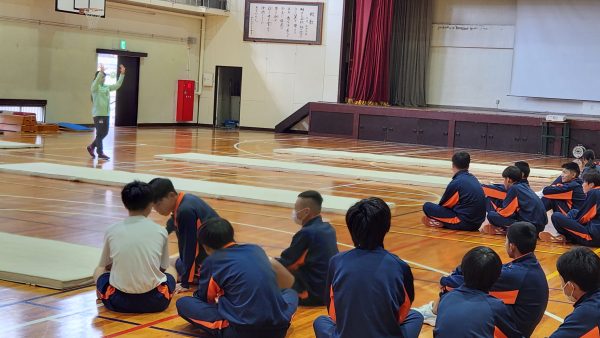 跳び箱やマットを使ったご指導で具体的なポイントがわかり、できなかった事ができるように!自分にもできるかも!生徒たちも楽しく参加できたようです。