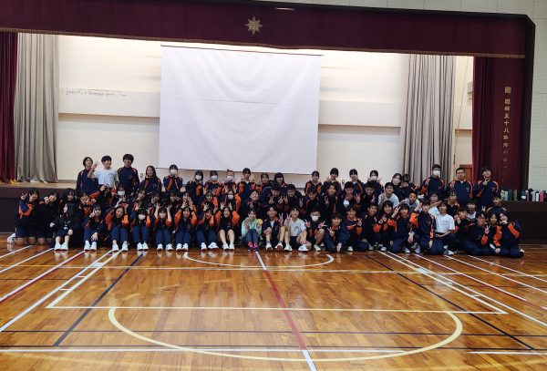 日当たりの良い体育館、集まった生徒たちの前に杉原選手が登場!
